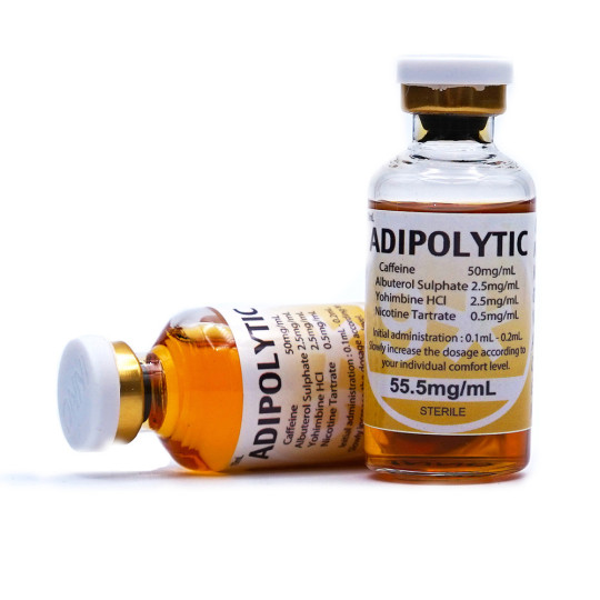 Innovagen Adipolytic contains same ingridients as oral Helios in an injectable form designed for mesotherapy style: 50mg Caffeine 2.5mg Yohimbine 2.5mg Albuterol 0.5mg Nicotine Adipoyltic can be used SC or IM. SC is likely preferred and in a mesotherapy injection pattern, ie. several small volumes across the fatty deposit. Innovagen Adipolytic is an injectable drug that is frequently used by bodybuilders. This medication has as a base a system that was firstly a special medicinal method that was developed in the middle of 20th century by Dr. M. Pistor. Innovagen Adipolytic is famous as Helios, fat burner and Non-Surgical Fat Dissolve. Mesotherapy drugs give an opportunity to users to solve their excess fat problems without surgery. For those who don’t know Mesotherapy is the kind of medical therapy that is based on injections given into the mesoderm (a layer under the skin). The drugs that are used in this kind of medical therapy burn the fat under the skin and contract its cells in the scarpa fascia layer. It may result in a temporal tough feel at the site of injection and the skin around it. As the result fat is melt and, as it happens when fat is burn during usual weight loss, passes through the blood and is withdrawn by kidneys and intestines. This therapy presupposes injections of certain amounts of drug one after another beneath the skin surface to burn the excess fat and cellulite, to improve blood circulation and venous drainage. As for the structure of Innovagen Adipolytic it should be mentioned it is consisted of Caffeine, Albuterol, Yohimbine and Nicotine. To be more precise 50 mg Caffeine, 2.5 mg Albuterol, 2.5 mg Yohimbine and 0.5 mg Nicotine. First two drugs act as fat burners through the androgenic mechanism but these medications act in the specific way. At the same time Albuterol is a powerful beta-2 agonist that directly and accurately affects lipolysis and this effect reminds the ephedrine's one. Yohimbine hcl is alpha-2 receptor antagonist that is also responsible for fat burn in fact by preventing the activity of various elements in the body. The total effect lies in explosion of the fat cells and extrication of the triglycerides into the blood making the body to burn fat by its own. Physical activity will raise the withdrawal of these triglycerides by raising the amount of “good” cholesterol in the blood. It also should be mentioned that such an activity is not necessary one, however, it will promote fast fat withdrawal. The merging of such drugs as Albuterol and Yohimbine in Innovagen Adipolytic exert one more beneficial effect, that is promoting overall fat burn unlike other most medications including phosphatidylcholine cannot do. The unpleasant thing in this therapy is at it was mentioned above is the frequency of injections that is not at all common for total cosmetic surgery. About half an hour after injections the patient may suffer from skin redness, some burning at the site of injection, or notice a stinging feeling, but as a rule therapy is not painful. Such reactions signaling that the therapy finished successfully. Usually patient does not suffer from bruises. Excess fat is burnt by the body by its own and then is successfully excreted. The user will notice fat burn results after 2 weeks of therapy even if the injections are shortened to every second day. Significant fat burning effect is noticeable in case of a daily 1 ml dose or with at a dose larger than 1ml every second day. In bodybuilding doses constituting 5ml per day are frequently used. However, such a dose is not recommended for administration since Albuterol may exert negative side effects.